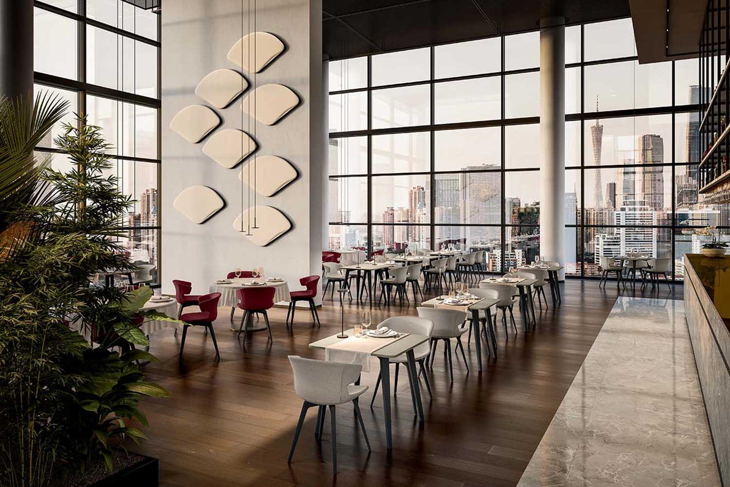 Pendant Cloak es una serie de paneles fonoabsorbentes componibles de formas diferentes, pensada para aumentar el bienestar auditivo en los ambientes residenciales y de hospitalidad.